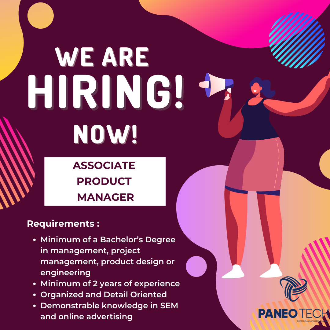 @ PANEOTECH we’re proud to offer innovative products that meet the needs and wants of our travel and tourism industry customers. To help us continue to grow our offerings, we’re in search of an experienced associate product manager to lead our multi-disciplinary development team. As an ideal candidate, you will have a keen eye for gaps in consumer product offerings and the innovative mindset to fill them. You’re a highly skilled market analyst with a proven ability to strategize the full lifecycle of product production — from conception through release. You may already be a confident leader who has experience guiding cross-functional teams in the successful creation of products that improve consumer experience and grow market share.